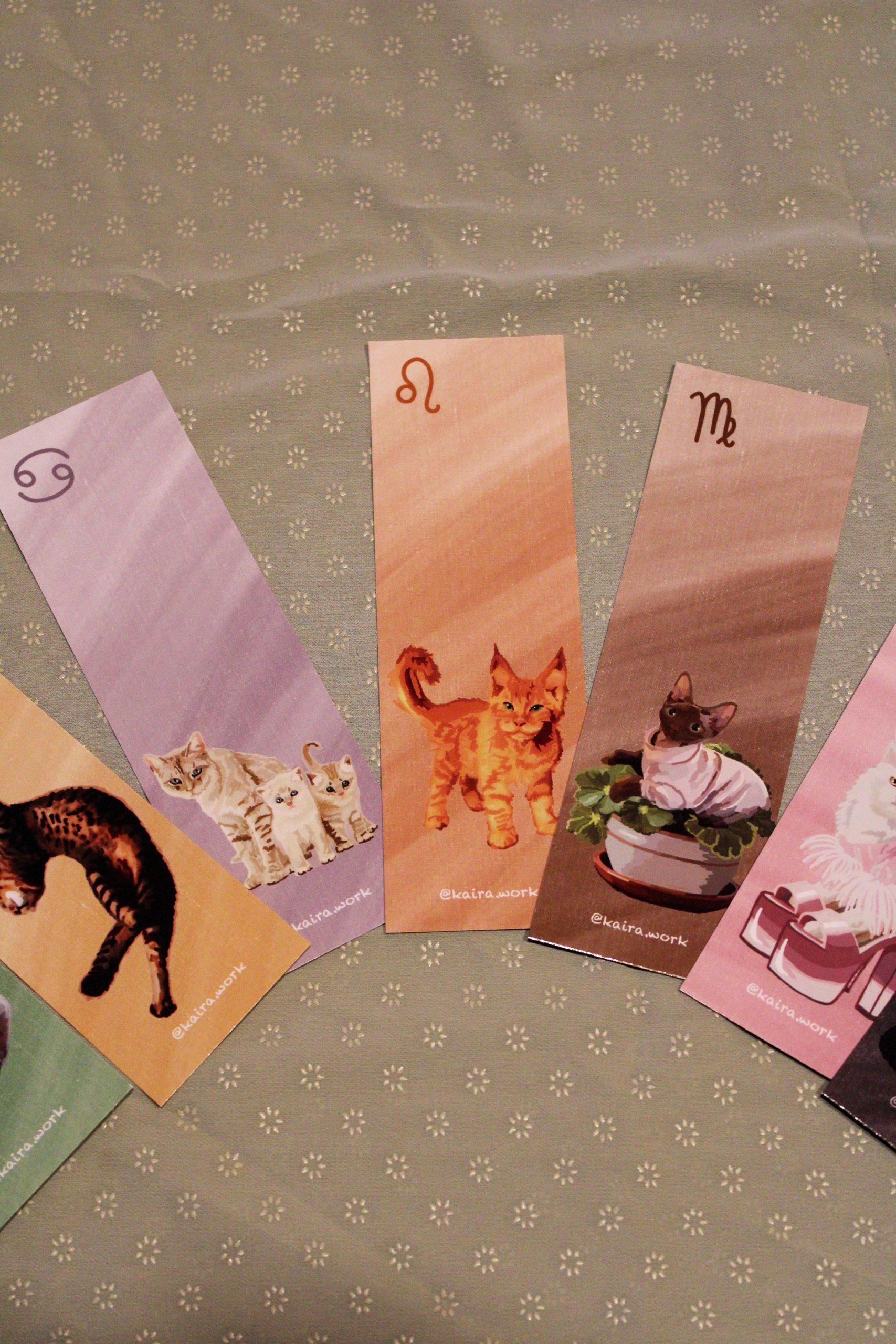 He disfrutado mucho ilustrando este libro que te permite conocer cómo se comportan los gatitos según su signo zodiacal. También puedes adquirir los marcapáginas de cada gato con una breve descripción de su temperamento.